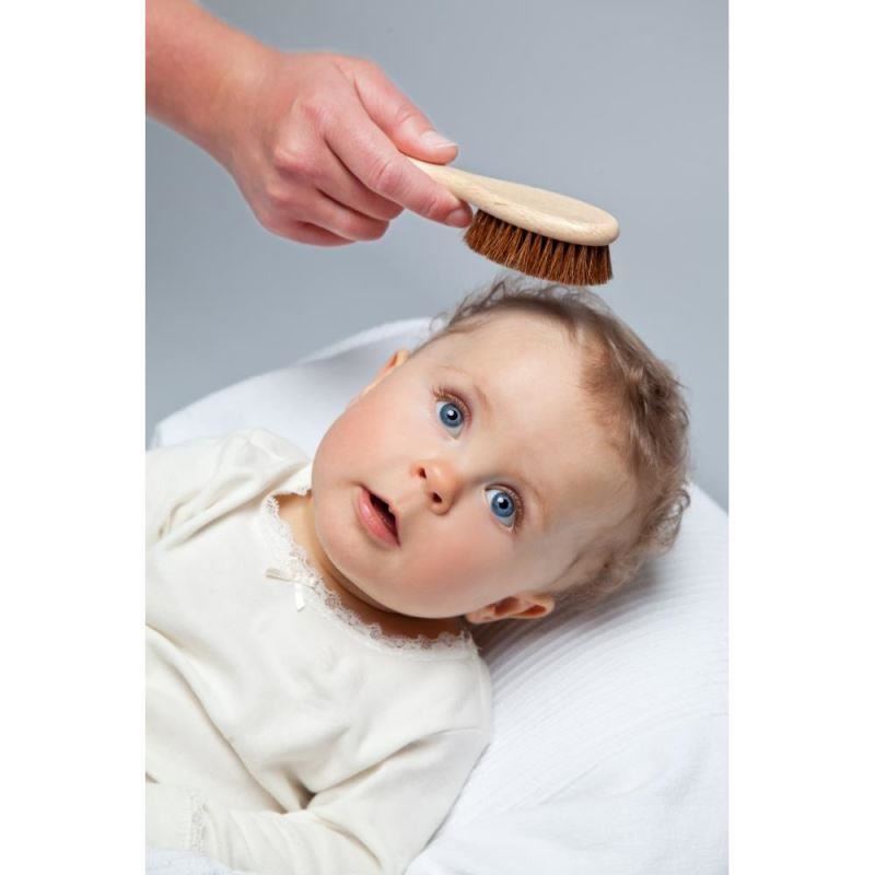 Periile din par natural de cal sunt cele mai potrivite pentru ingrijirea copiilor pana la 6 luni sau a celor cu par des si tare. Parul puternic sau buclele pot fi descurcate foarte usor cu aceasta perie din par de cal. Peria este potrivita deasemenea si pentru tratarea crustelor de lapte. Numai dupa ce fontanela este inchisa se poate folosi o perie normala de par, cu peri mai puternici. Aceasta perie are manerul confectionat dintr-un lemn natural de inalta calitate.