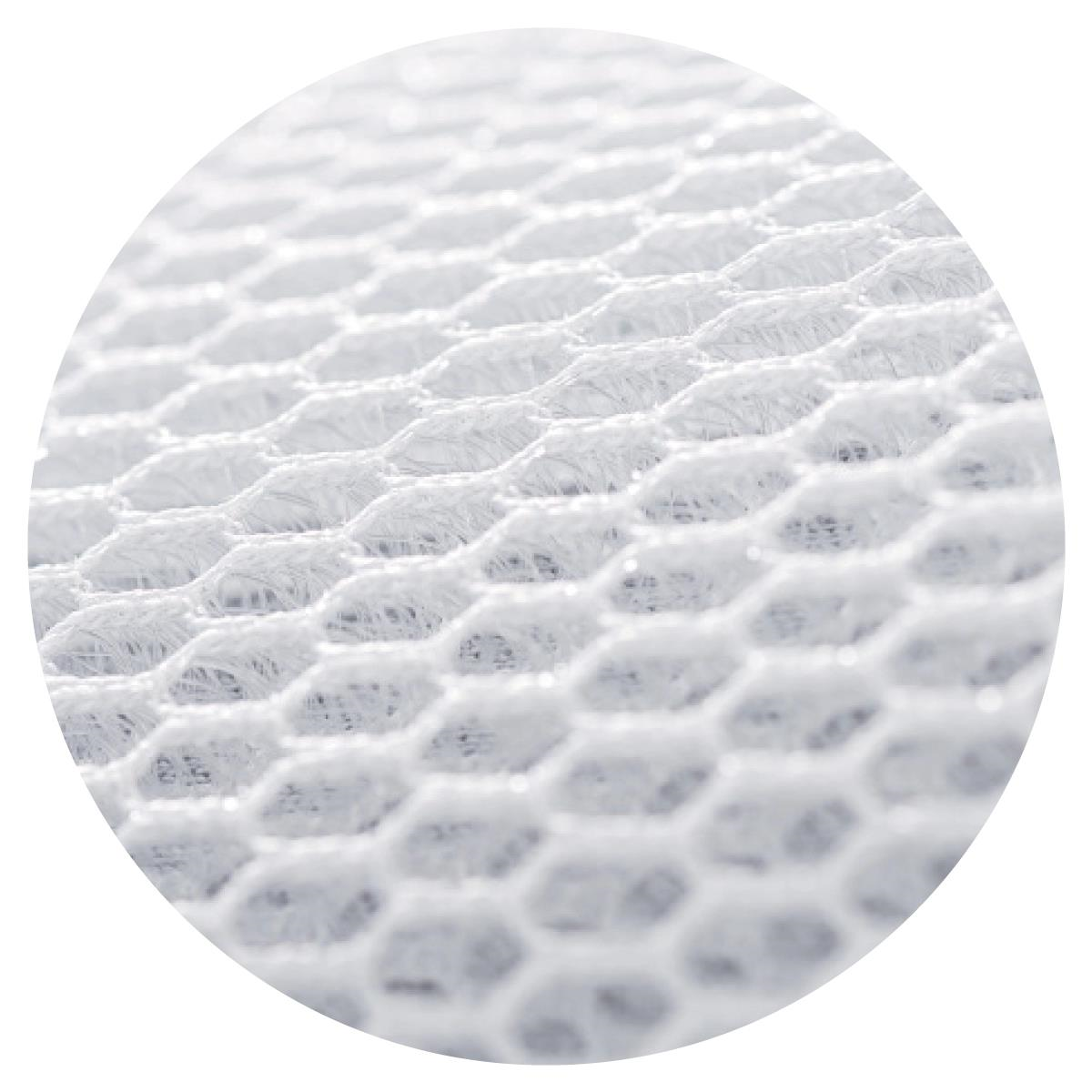 - Stratul de mijloc absorbant captează lichidele și umezeala. Aerul care circulă prin structura 3D elimină rapid umezeala, bebelușul fiind permanent uscat și în confort.