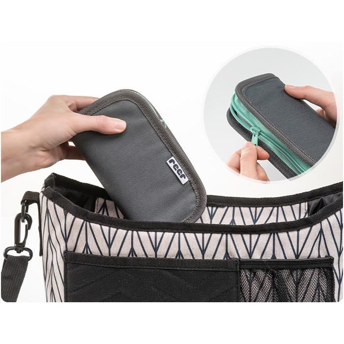 Setul include si o gentuta cu fermoar pentru depozitare si transport, ce include spatii suplimentare de depozitare pentru un termometru sau pentru o periuta de dinti si un buzunar practic pentru plasturi, creme, supozitoare sau alte accesorii.
